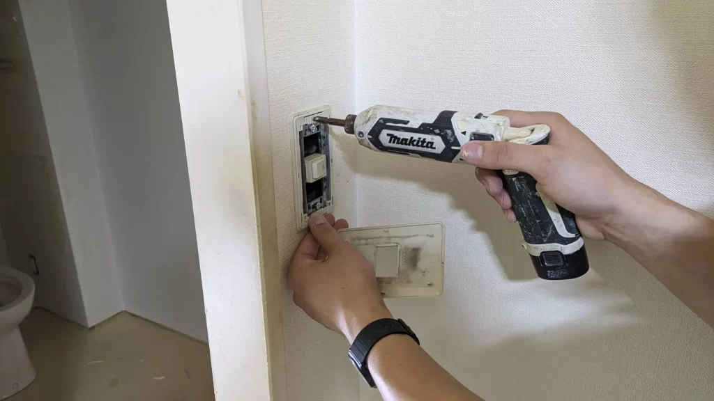 まず、壁紙を剥がす前にコンセントプレートや、照明などを取り外していきます。