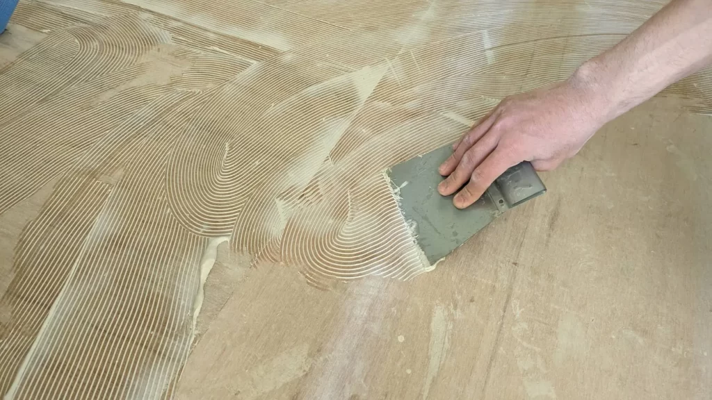 塗り終わったらすぐ貼るのではなく、接着剤が粘着状態になるまで、数分程度放置します。この時間をオープンタイムと言います。